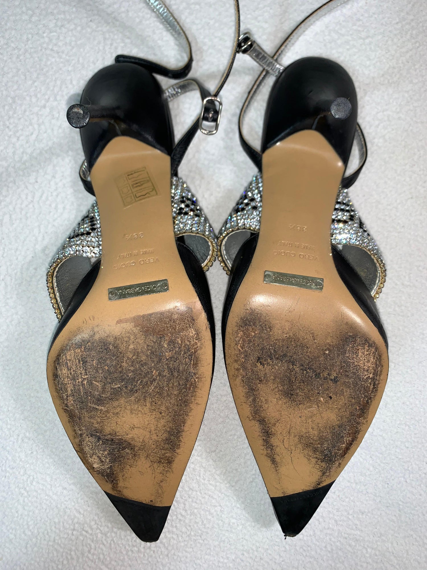 S S 2000 Dolce And Gabbana Crystal Logo Black Leather High Heels 38 5 At 1stdibs 2000 Heels